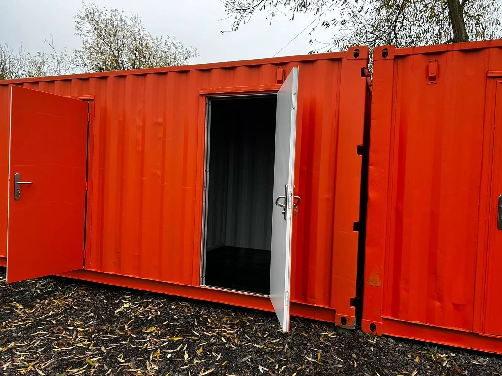 Each compartment is equipped with its own side-access door, allowing multiple users to access their specific storage area independently without disturbing adjacent spaces . The doors feature easy-open handle systems and are fitted with lockboxes to accommodate user-supplied locks. This configuration is frequently utilized in self-storage facilities to offer smaller unit sizes at ground level or elevated positions when stacked . The container retains its structural integrity for stacking, making it suitable for multi-level storage sites.