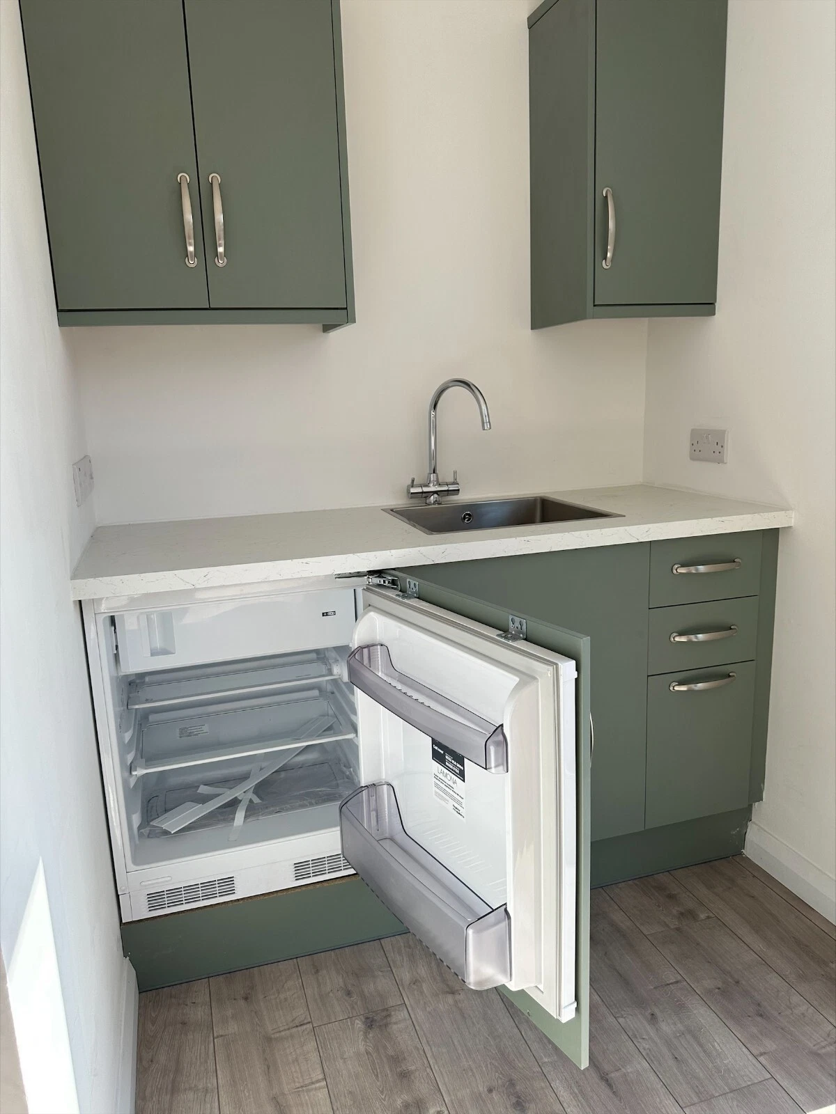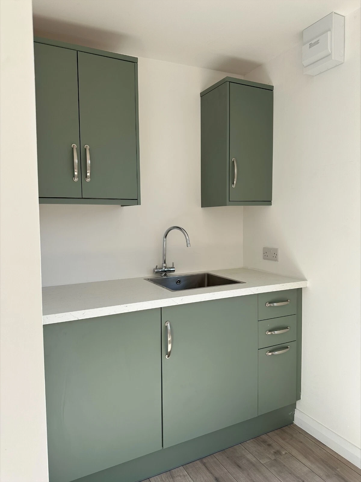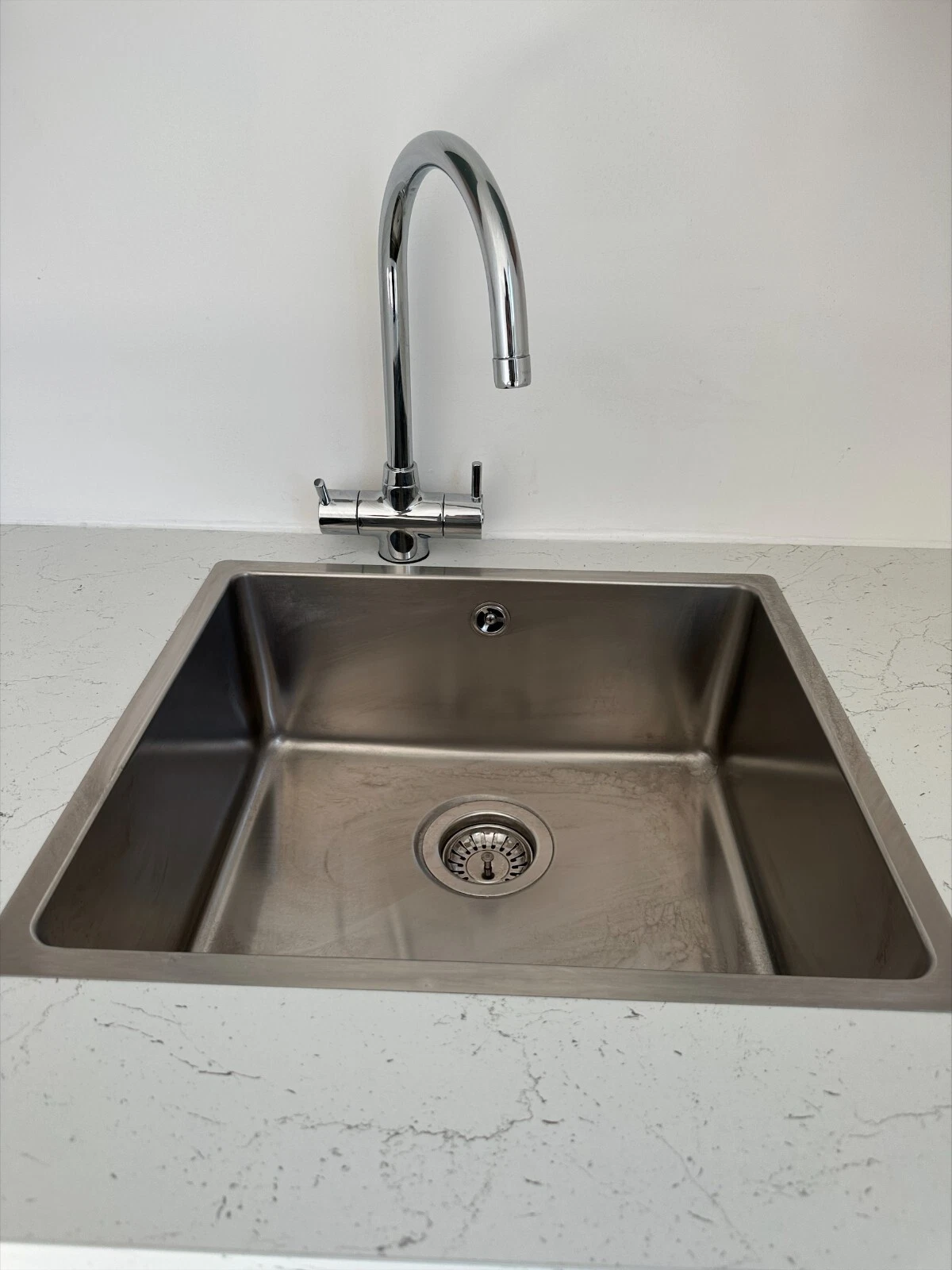 Separate Wet Areas: The WC compartment is constructed with a raised floor to accommodate plumbing traps and connections. It is fitted with a toilet, vanity unit, and an exhaust fan for proper ventilation . The kitchenette area is prepared for sink installation and appliance setup.