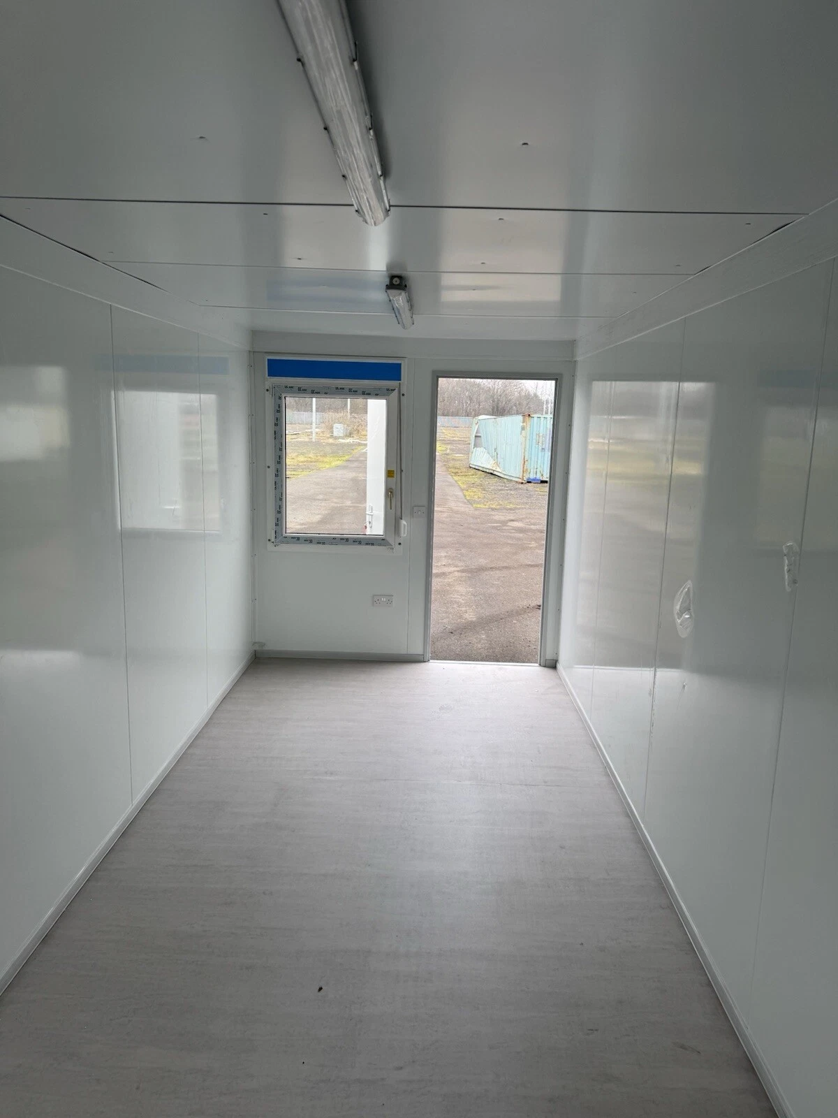 The interior is finished with durable materials suitable for daily operations. Walls and ceilings are lined with pre-finished panels, creating a clean and professional aesthetic. The insulation package ensures the space remains cooler in summer and warmer in winter, providing a more comfortable environment for personnel compared to a non-insulated metal structure. Electrical preparations are integrated into the unit, with provisions for standard lighting and power outlets, allowing for quick connection on-site .