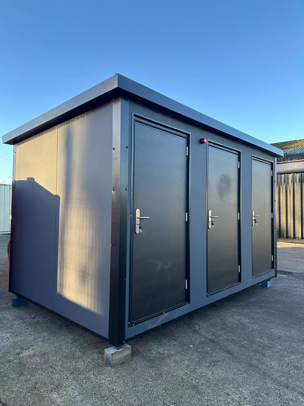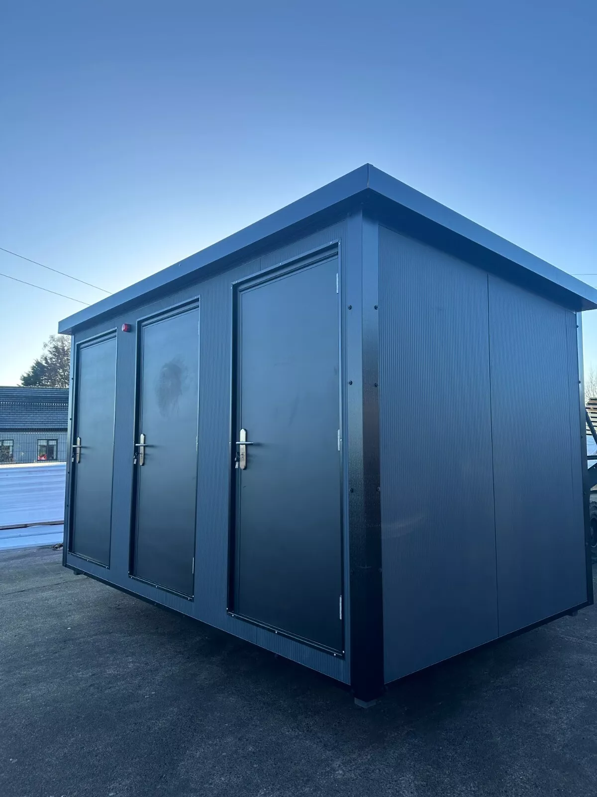 This Triple Toilet Unit is a self-contained sanitation facility constructed within a modified shipping container framework. Designed for deployment in locations requiring permanent or temporary restroom infrastructure, this unit provides three separate toilet compartments within a single, secure structure. The containerized construction facilitates straightforward transportation and installation across various site conditions .